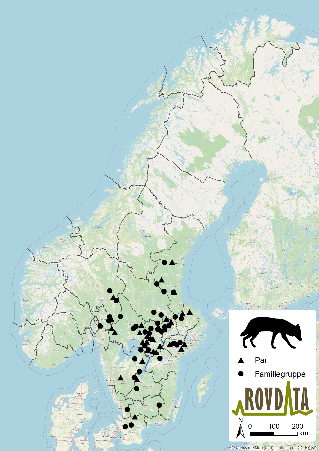 Ulveflokker og revirmarkerende par av ulv i Skandinavia vinteren 2024-2025. Kart: Rovdata